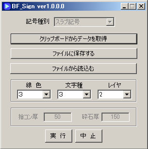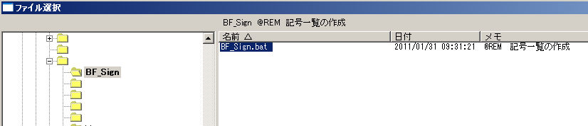 ダウンロードした【BF_Sign.lzh】を解凍します。【BF_Sign.bat】、【BF_Sign.dat】、【BF_Sign.exe】 、【beam_sign.dat】、【BF_signHelp.chm】、【sample.xls】のファイルが出来ます。これらのファイルを、任意のフォルダ(名前の中に空白を含まない)に移動します。 |