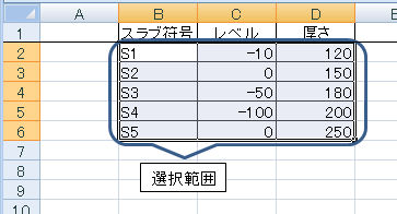 | sample.xlsを開いて、スラブ記号のシートを選択します。 |