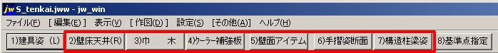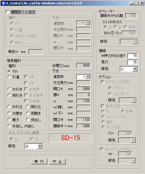 上記の画面で作図したい建具、欄間、オペレーター、ドアクローザ、取手、キックプレート等を指定する。 |