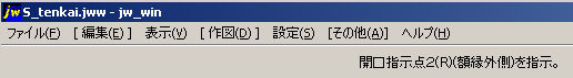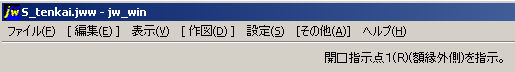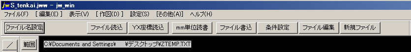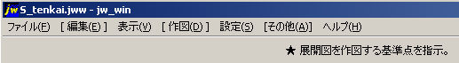 ダウンロードした【S_tenkai.lzh】を解凍します。【S_tenkai.bat】、【S_tenkai.exe】、【S_tenkai説明.txt】 他のファイルが出来ます。これらのファイルを、任意のフォルダ(名前の中に空白を含まない)に移動します。jwwを起動し、「外部変形」で【S_tenkai.bat】を指定します。メッセージに従い、指示します。 |