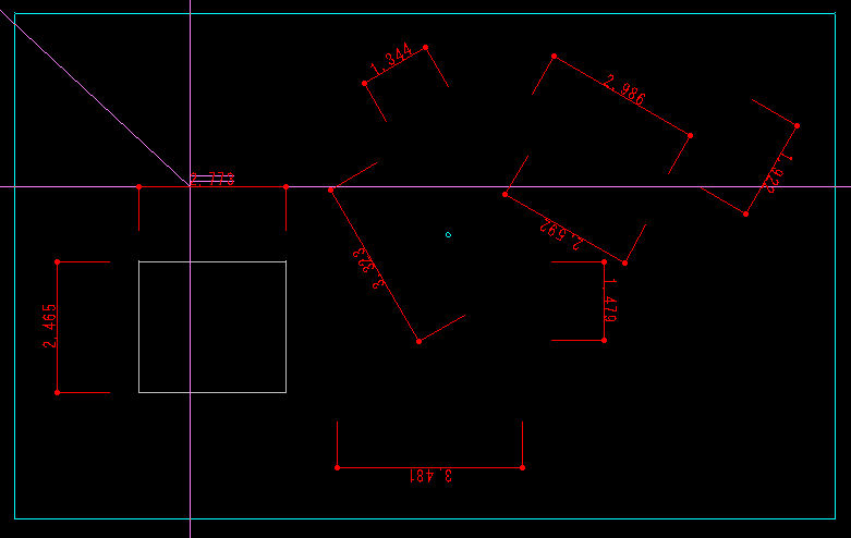 寸法値を複写したい範囲を選択します。この場合、一律の位置に複写しますので、注意が必要です。縦の寸法と、横の寸法が選択されていると、複写されたものが離れてしまったりとか、寸法と重なってしまうなどなります。このモードは、寸法の同一方向のものを対象にしてください。 |