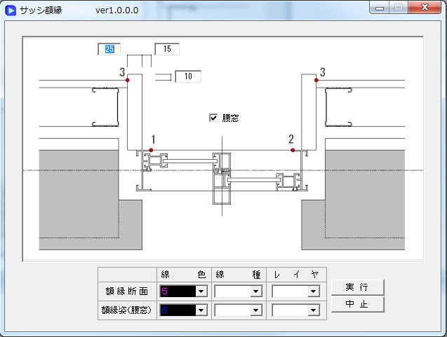 平面、断面に使用できますが、断面図でサッシ下部の額縁のチリが異なるような場合は対応で来ません。 |