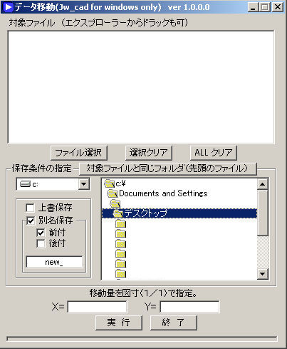 複数のjwwのファイル(ver3.51以降のデータ構造)の中のデータを、移動します。 |