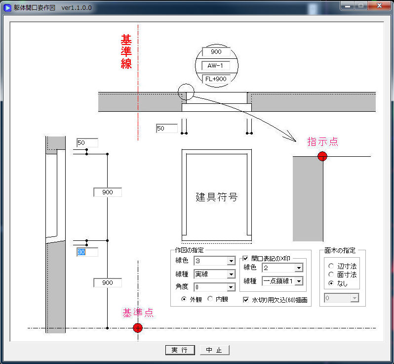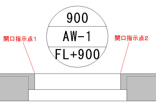 施工図の躯体開口姿を作図します。 |
