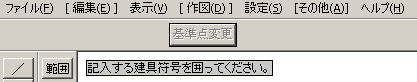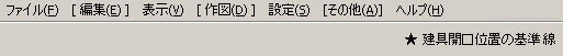 先に示した通り、最初に作図する基準線を指定し、開口位置の指定、建具符号を指定します。この基準を指定すれば、同じ作図位置、基準 線に対して計測、作図を行い開口を作図しますので、以後は開口の指定、建具符号の指定をすれば作図します。 |