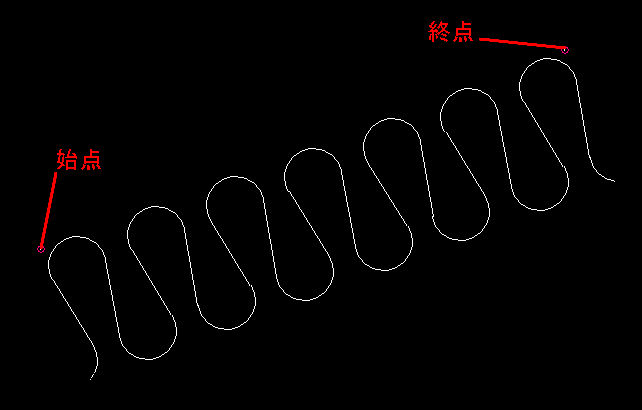 上記の指定がない場合は、方向点に向かって作図します。この場合、(基準点と方向点の距離)/巾の端数を切上げした回数分作図します。 |