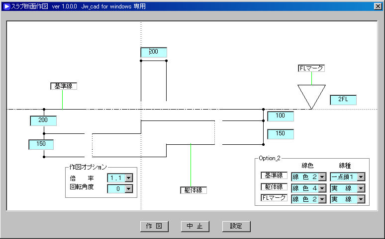 寸法関係の設定は、jwwのレジストリから各値を取得していますので、特別の設定はありません。 |