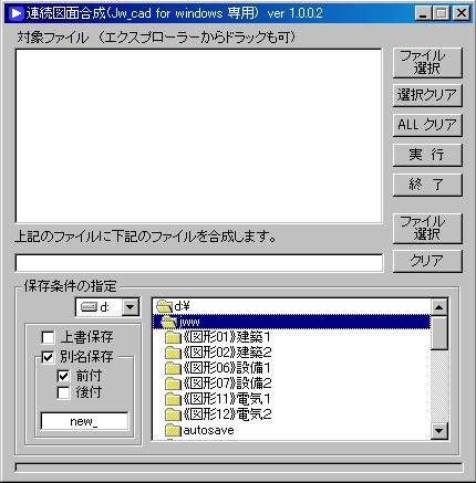 jww(ver3.51以降のデータ構造)のファイルを対象にしています。DOS版のjwcファイルは、出来ません。 |